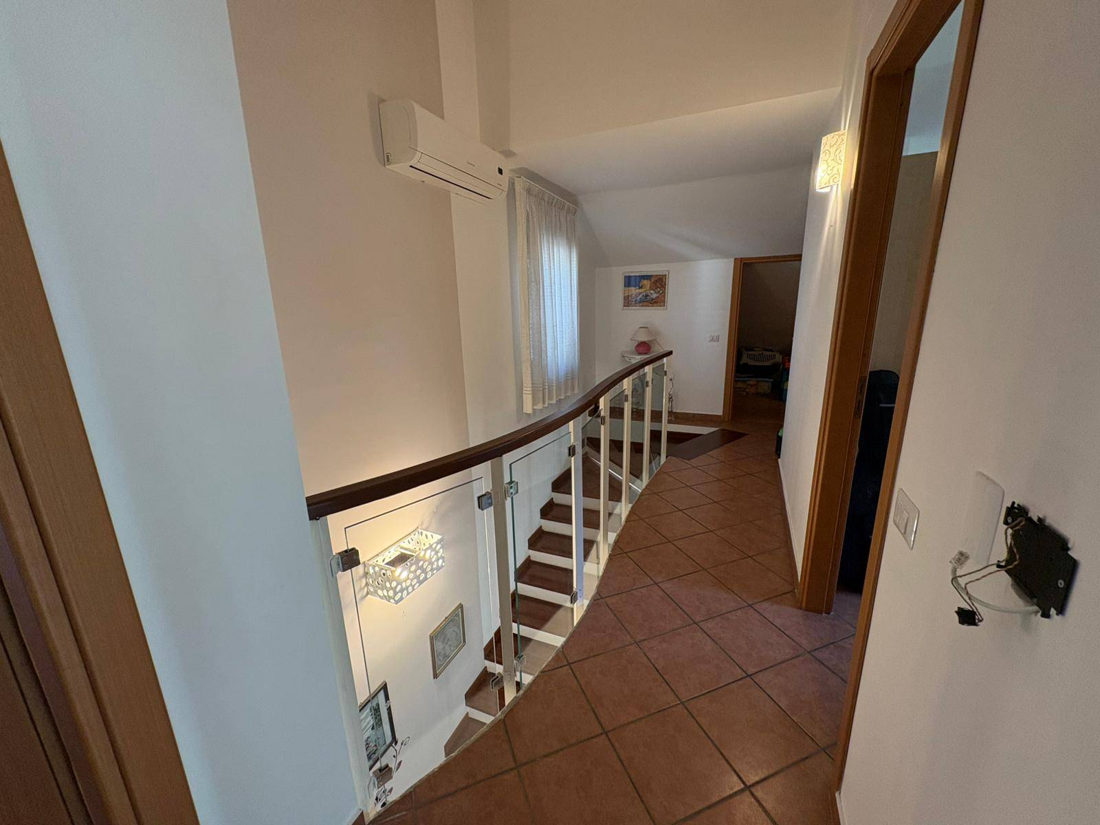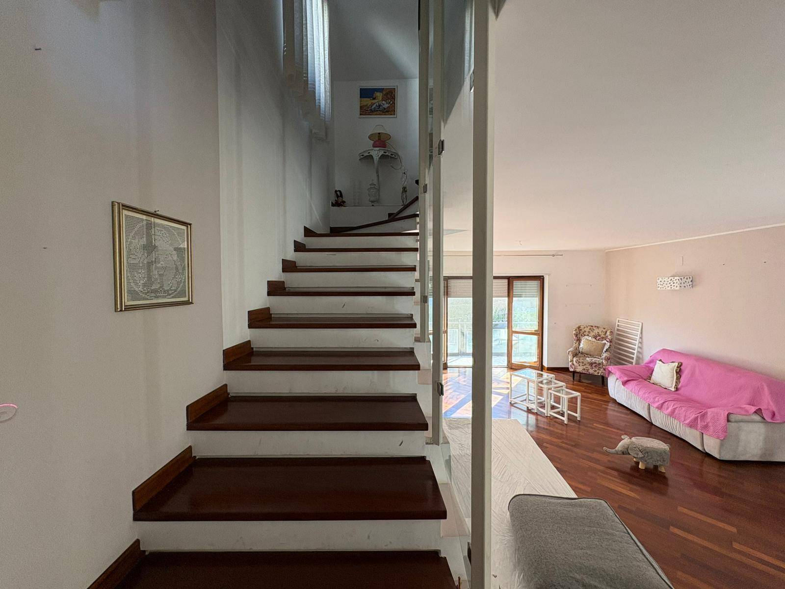 Piano Mansardato: collegato da scala interna rifinita in parquet, comprende due vani (uno attualmente adibito a palestra), bagno e terrazzo panoramico.