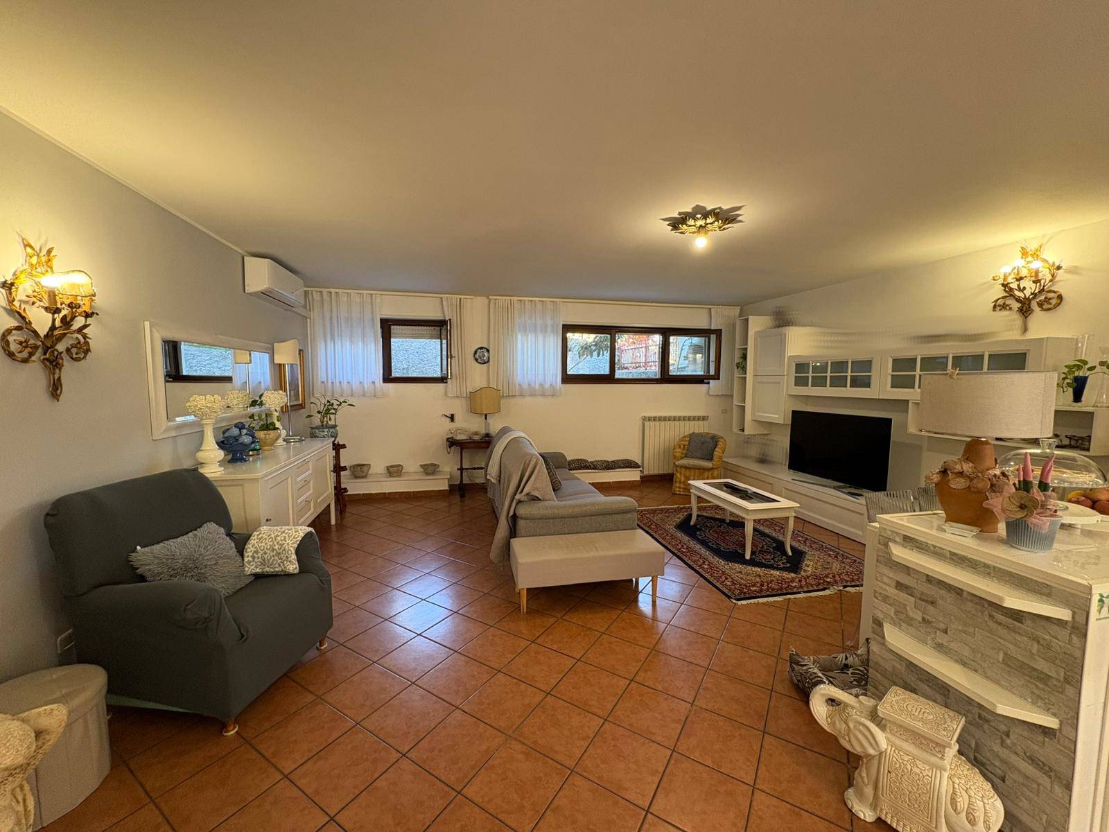 Piano Seminterrato: ampia tavernetta con cucina/soggiorno, lavanderia, due vani, bagno e numerosi armadi a muro, oltre ad un’intercapedine perimetrale che garantisce un ottimo isolamento.